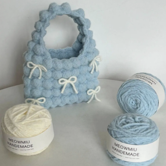 Cloud Bows – Puff Crochet Handbag DIY Kit – Sky Blue
