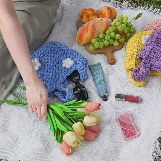 Ivory Petals - Woven Handbag DIY Kit - Azure